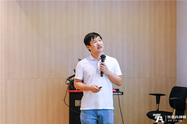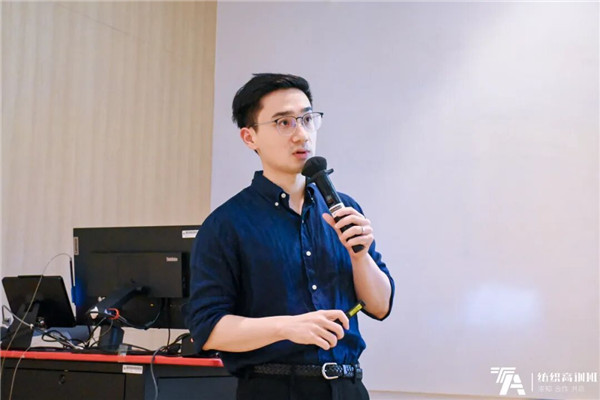 图 | 蒲俊宏 此外,香港理工大学研究助理教授方波、蒲俊宏分别分享了通过良溶剂交换技术制备超细聚苯胺纤维、超韧聚酰亚胺纤维等高技术纤维的研究情况,以及功能高分子复合材料纤维中填料取向调控与高性能化的技术路径。