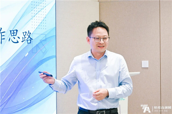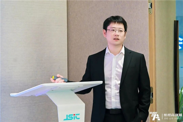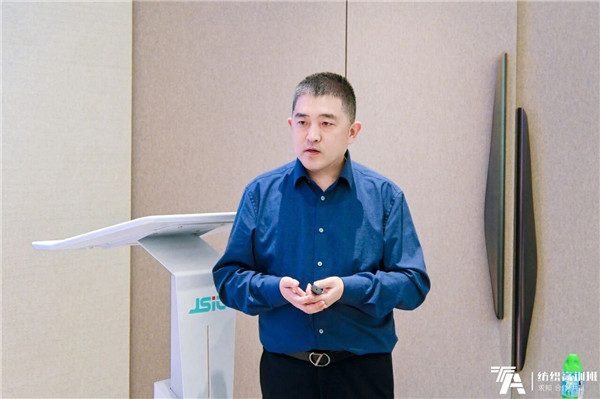图 | 卜友军 香港江苏科创中心科创导师、纺织高训班9期学员卜友军介绍了香港科创发展的优势与机遇。例如,作为国际金融中心之一,香港在全球市场接入中具有便利性;持续增长的科创资金为企业提供研发、孵化和产业化支持;不断引进的全球顶尖人才则为创新突破提供智力支撑。