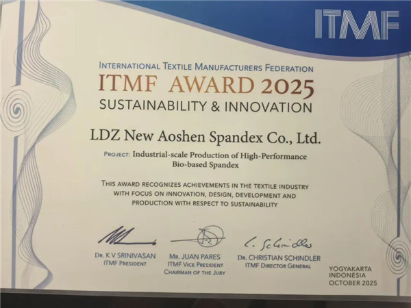 其中,中国大陆企业表现亮眼:连云港杜钟新奥神氨纶有限公司凭借“高性能生物基氨纶的工业化生产”项目,以技术突破推动氨纶产业向绿色低碳转型,荣膺“2025国际纺联可持续和创新奖”;唐山三友集团兴达化纤有限公司则以“下一代纺织材料,缔造跨界合作新纪元”的实践成果,通过材料创新与全球协同构建产业新生态,摘得“2025国际纺联国际合作奖”,两项荣誉充分彰显了中国大陆纺织企业在全球可持续发展与国际合作中的标杆实力。