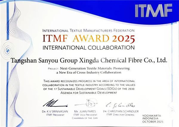 国际纺联国际合作奖旨在以联合国《2030 年可持续发展议程》中的17项可持续发展目标为指引,表彰纺织行业国际合作领域取得的进展。该奖项强调跨国界、跨领域的协同合作如何创造双赢的局面。 2025国际纺联国际合作奖获奖名单(按公司英文名称首字母排序) • Bursa Uludag University(土耳其) Unlocking Circular Fashion Design Excellence(ReMODE)(解锁循环时尚设计卓越之道——ReMODE) • 远东新世纪股份有限公司(中国台湾) Biological Recycling of PET/Polyester(PET/聚酯生物回收利用) • 晓星天禧(韩国) From Waste to Worth – The T2T Collaboration Story(变废为宝——T2T协作故事) • 唐山三友集团兴达化纤有限公司(中国大陆) Next-Generation Textile Materials: Pioneering a New Era of Cross-Industry Collaboration(下一代纺织材料,缔造跨界合作新纪元) 中国大陆获奖项目简介 本项目以国际合作为基础,构建了以产业链协同为核心、技术创新为驱动、商业落地为导向的新型循环再生产业模式。