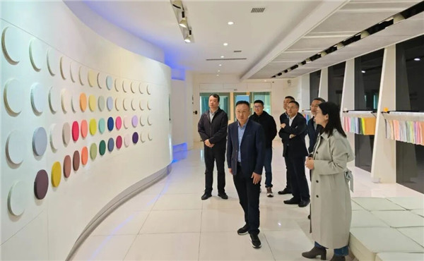 在研发中心,张总介绍华孚在被美国制裁后,积极转型升级,深耕国内市场,调整产品结构,大力开展产品创新,建立色纺纱、染色纱、坯纱“三纱合一”的品类矩阵。2025年,华孚纱线主业市场回暖,订单稳步回升。杨会长对华孚在困难条件下取得的成绩表示肯定和赞赏。