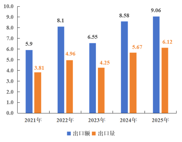 (1)长丝织物出口稳中有增 今年以来,全球经济增长动能趋缓,贸易壁垒抬升与供应链不确定性相互交织,我国纺织行业面临的外部环境更趋复杂严峻。尽管多重超预期因素带来持续压力,行业依然承压前行,在挑战中展现出较强的发展韧性。据中国海关统计,2025年1~9月,我国纺织品服装出口额为2216.9亿美元,同比下降0.3%。其中,服装出口1152.1亿美元,同比下降2.5%;纺织品出口1064.8亿美元,同比增长2.1%。 依托坚实的产业基础与前瞻的市场布局,我国长丝织造产业在复杂环境中展现出较强韧性,出口金额和出口数量均保持增长态势,出口规模优势持续扩大。我国化纤长丝织物2025年1~9月累计出口金额152.3亿美元,同比增长0.6%,在纺织织物出口中贡献率达29.2%;累计出口数量200.5亿米,同比增长13.4%。 受国际贸易局势影响和美国关税的不确定性增加,叠加原料等成本波动,出口产品单价走低,挤压行业利润空间。我国化纤长丝织物2025年1~9月出口单价0.8美元/米,同比下降11.3%。 从主要产品出口来看,2025年1~9月涤纶长丝织物累计出口金额127.1亿美元,较去年同期增长0.6%;累计出口数量174亿米,同比增长13.1%。锦纶长丝织物出口量额创历史同期新高,1~9月累计出口金额9.1亿美元,同比增长5.6%;累计出口数量6.1亿米,同比增长8.1%,海外市场认可度不断提高,竞争力不断增强,呈现出向全球价值链中高端迈进趋势。(图2)