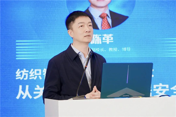 东华大学副校长陈革作“纺织智能制造系统构建:从关键技术到数据安全”的报告,介绍了纺织生产的发展经历的机械化、自动化、信息化、智能化4个阶段,以及数字化和智能化制造的内涵、纺织生产中的典型案例。“十四五”期间,我国纺织智能制造取得重要进展,AI技术已经融入纺织生产,涌现出一大批卓越级智能工厂、优秀系统解决方案供应商等。在智能制造系统的构建方面,他解析了物联网技术、大数据分析技术、人工智能技术、机器人技术、数字孪生技术等智能制造关键技术。