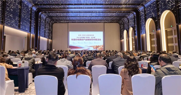 11月8日上午,由工业和信息化部、新疆维吾尔自治区人民政府、新疆生产建设兵团、中国纺织工业联合会指导,新疆维吾尔自治区工业和信息化厅、新疆生产建设兵团工业和信息化局主办,巴音郭楞蒙古自治州人民政府、《中国纺织》杂志社承办,中国家用纺织品行业协会、中国棉纺织行业协会、中国化学纤维工业协会协办,巴音郭楞蒙古自治州工业和信息化局支持,主题为“机遇、创新与高质量发展”的2025纺织服装“优供给·促升级”·新疆纱线家纺产业链协同对接活动在库尔勒举办。