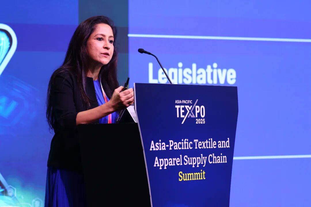 ![]() 新加坡时尚协会南部区域主任Shruti Singh作“从洞察到行动:共创可持续时尚未来”的报告。基于对品牌、制造商、零售商、政府机构、创新者等多方利益相关者的深入调研,了解亚太地区时尚生态系统的现状、差距与挑战,探寻未来发展机遇,旨在促进区域伙伴关系,共同推动能力建设与技术创新,构建更加循环、更具韧性的时尚生态系统,助力亚洲时尚产业实现可持续转型。