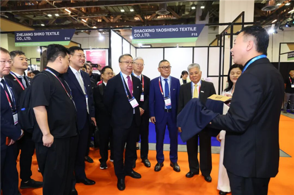 开幕式后,大会安排VIP贵宾进行会场参观,香港纺织商会代表团参与其中,走访来自中国内地、越南、柬埔寨、马来西亚等地的重点展馆,深入了解最新面料技术、智能制造方案及可持续材料应用成果。期间,代表团与参展企业深入交流,探讨合作潜力与市场机遇,强化香港在整合亚太供应链中的桥梁角色。