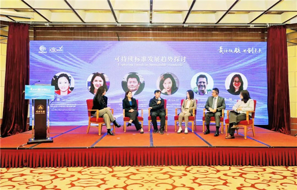在中国纺联社责办国际项目总监郑剑主持的“可持续标准发展趋势”高端对话中,联合国全球契约组织中国联络办公室内容运营与全球契约学院高级经理葛倩,社会责任国际(SAI)主席、CEO Jane Hwang,中国电子工业标准化技术协会副秘书长、中电标协社会责任工作委员会秘书长贺宏良,H&M合作伙伴关系及公共事务副总裁徐睆,联合国儿童基金会驻华办事处合作伙伴经理马九安,结合自身实践对可持续标准未来趋势提出了各自看法,并一致认为,投资可持续发展,就是投资未来。 他们提到,社会的可持续发展不是一家企业单打独斗能完成的,需构建多方协同生态,如以全产业链协同推进可持续供应链建设,龙头企业发挥链主作用带动上下游共创创新;立足价值普世、场景多样、以人为本原则,引导新技术向善赋能;主动对接欧盟尽责立法等国际规则,强化价值链环境与人权风险管理;通过政策引导、标准认定、跨界合作等多元力量,推动家庭友好型工作场所建设,实现社会责任与产业发展深度融合。
