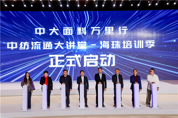 开启产业赋能新篇章 颁奖仪式尾声,在全场嘉宾的见证下,组委会正式启动了“中大面料万里行”与“中纺流通大讲堂——海珠培训季”两大重磅赋能项目。