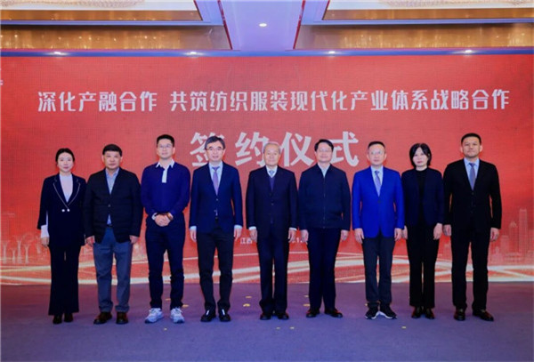 为推动顶层设计转化为发展实效,构建专业化合作平台,中纺企协副会长兼秘书长王水元,中纺资产总经理助理欧鹏,九江市纺织行业协会会长刘诸辉代表三方,签署“深化产融合作,共筑纺织服装现代化产业体系”战略合作框架协议。杜钰洲、邓小丁、端小平、杨兆华、冯德虎、李振洁等领导共同上台见证。