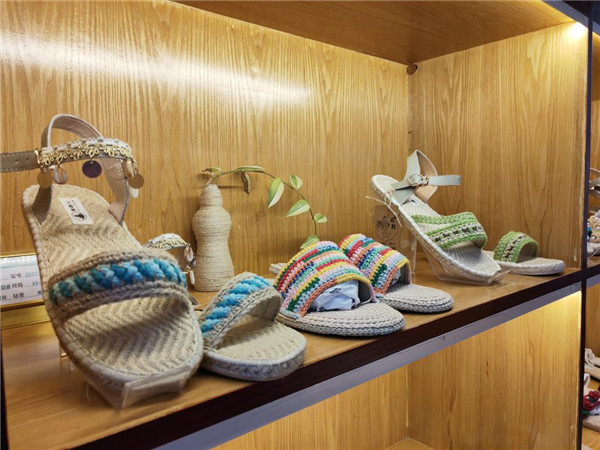 图为雅路人公司设计生产的麻鞋产品。新华社记者王紫轩 摄 44岁的牛军霞来自甘谷县新兴镇半屲村,是早年接受培训的留守妇女之一,如今已成为麻鞋非遗工坊的骨干讲师。“经过培训,学员们能系统掌握编辫、盘底、栽边、绱鞋等工序,变成有技术的手艺人,每月能赚两三千元。” 在甘谷,沉淀千年的麻编文化正转变为激活乡村的产业优势。近年来,当地持续加大对麻编产业的扶持和奖补力度,一大批本土麻编企业初具规模,乡镇小微型作坊遍地开花,实现产品升级和技术转型。 在甘肃大漠行文化产业发展有限公司的流水线上,麻皮通过专业剥脱装备从麻秆上迅速剥离,再经过脱胶、梳理、纺织等环节,化身柔软透气的麻质面料。 “我们研发了大青麻韧皮纤维剥离装置和大青麻纺织原料烘干装置,同时和多家行业龙头企业合作建立纺织厂、染色厂、服装厂,既能面向市场提供面料,又能自主生产鞋子、马甲、裤子等成品,在各类电商平台售卖。”甘肃大漠行文化产业发展有限公司负责人宫云云说,公司的麻编产品很受欧美、日韩市场欢迎。