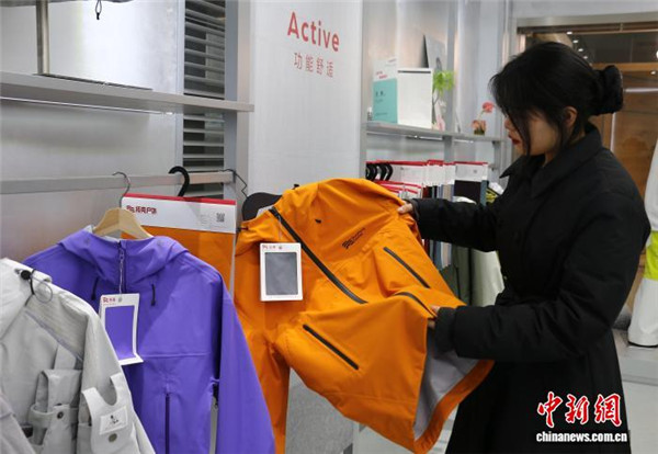 12月24日,布商整理冲锋衣样衣。今年以来,户外运动持续升温,位于浙江绍兴柯桥的中国轻纺城户外功能面料专营区吸引不少下游采购商,其中,冲锋衣专用面料受热捧。中国轻纺城是全球最大的纺织品集散中心,经营纺织品50万余种。中新社记者 项菁 摄