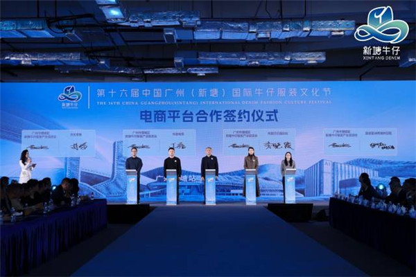 新塘国际牛仔服装文化节开幕式上,阿里巴巴国际站、字节跳动-抖音电商、京东、服装星球等跨境平台与新塘牛仔服装产业促进会现场签约,达成战略合作,未来将聚力打通“新塘智造”牛仔服饰出海新通道。