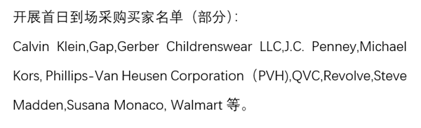 Texworld面料展区针织面料、梭织面料、功能性面料以及绣花与蕾丝面料等附加值高、工艺复杂的产品依然是展会的亮点,这些产品占据了面料参展企业面积的一半以上。 Apparel Sourcing 服装展区外套、大衣、运动服及针织类产品依然是美国东海岸采购的热门大类。帽子、围巾、包袋、饰品等配饰类企业也均有新品展出,为品牌类买家提供了更完整的组合采购方案。