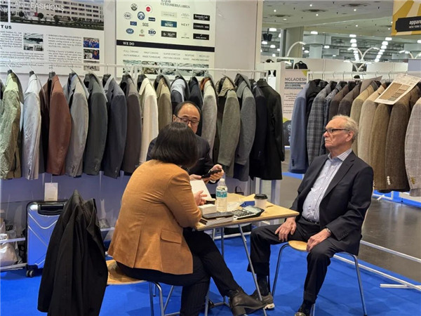 当地时间1月20日下午,中华人民共和国驻纽约总领馆负责经商事务的参赞张帆一行人参观展会,并现场调研安徽凡思澈、江苏亿木纺织、上海凌至服饰、浙江彩蝶等中国纺织服装企业。