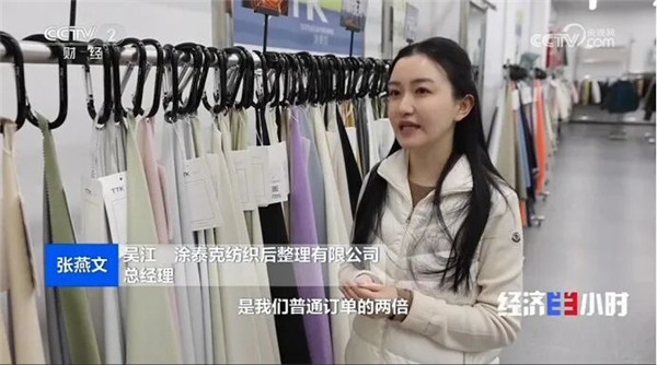 如果说智能装备是产业升级的“硬支撑”,技术创新便是价值跃升的“核动力”。在吴江涂泰克纺织后整理有限公司车间,一款款用于冲锋衣的生物基微多孔薄膜正在生产中。“膜材厚度仅0.5毫米-0.6毫米,单膜透湿量每平方米每24小时可以达到2万克以上。”总经理张燕文介绍,这项纳米级技术实现了面料透气与防水的完美平衡。 实验室里,实验员们正在开展透湿性测试:将氯化钙装入容器、用面料密封称重,放入38℃、湿度90%的模拟环境,24小时后再次称重测算。“每平方米每24小时的透湿量达8千克,数据十分出色。”公司董事长张宏卫解释,高效透湿性能可快速排出运动汗液,大幅提升穿着舒适性。这款溢价20%的新产品,凭借核心技术供不应求,仅占10%产能却贡献了普通订单两倍的利润,利润率达20%左右,更带动企业订单量激增10多倍。
