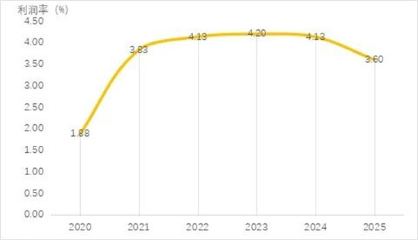 2020-2025年规模以上毛纺织及染整企业利润率变化情况(单位:%)