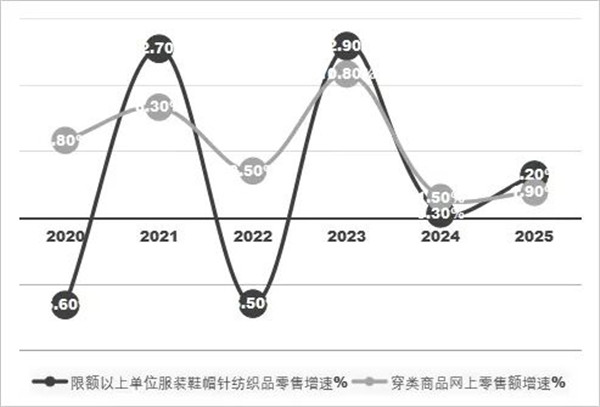 2020-2025年限额以上单位服装鞋帽针纺织品零售增速与穿类商品网上零售增速 资料来源:国家统计局 国外市场消费表现则呈现显著的区域分化。美国作为核心出口市场,2025年消费需求保持相对稳定,1-10月,美国进口各类毛纺产品35.6亿美元,同比略增0.7%。但受宏观形势的影响,中国毛纺产品在美国市场份额下滑较快,占比缩水约10个百分点。