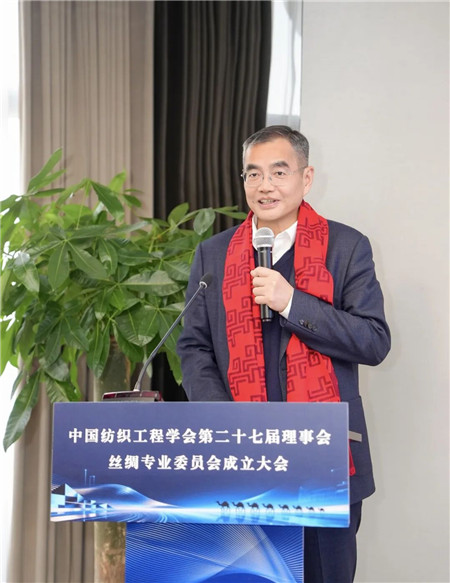 姚菊明在履职致辞中指出,当前我国丝绸产业正处于转型升级的关键阶段,面临科技革命、产业变革与消费升级带来的多重机遇与挑战。丝绸作为中华文明的重要象征和“一带一路”倡议的文化纽带,承载着深厚的历史底蕴与时代使命。他提出,新一届丝绸专业委员会将重点推进5项工作:一是强化科技创新,引领产业高质量发展;二是传承弘扬丝绸文化,促进文化与产业深度融合;三是加强高层次人才培养,夯实行业发展根基;四是深化国际合作,拓展全球发展空间;五是优化行业服务体系,提升专业化支撑能力。