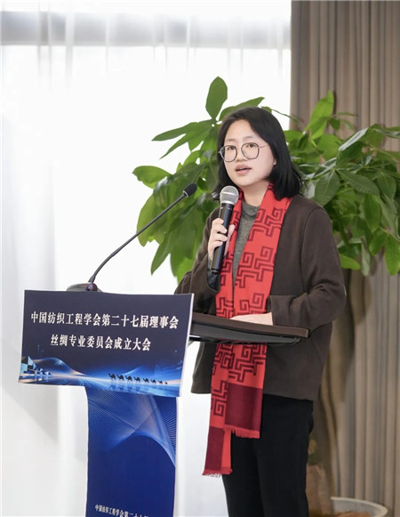 张洪玲介绍了学会的发展概况与核心业务,并对《中国纺织工程学会分支机构管理办法(试行)》进行了详细解读。针对专委会未来发展,她提出3点建议,一是聚焦核心难题攻关,精准梳理合力破解;二是深化学术交流合作,破壁赋能联通中外;三是布局未来丝绸科技,驱动产业转型升级。她强调,学会将持续激发行业创新活力,并积极搭建人才推荐通道,全力、深度支持丝绸专业委员会建设,开放优质资源,为其稳健发展筑牢坚实后盾。