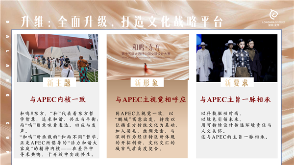 “和鸣 #东方”的内涵与时代呼应 第十五届“大浪杯”中国女装设计大赛主题“和鸣#东方”,立足产业发展背景、社会热点与市场需求,既彰显一段时期服装产业的发展面貌,也全面考验设计师从灵感挖掘到商业转化的综合能力。 当前,中国服装产业正以科技、时尚、绿色、健康为定位,处于高质量发展的关键阶段,大赛倡导设计师以科技赋能设计,将可持续理念融入创作,打造赋能美好生活的产品。2026年深圳APEC会议“开放、创新、合作”的指引与“活力和谐大家庭”的精神内核,构成主题的重要社会依托;以年轻人为主的消费群体追求“悦己消费”与“即时满足”的市场偏好,也为主题落地提供了方向指引。 “和鸣 # 东方” “和”——和谐共生,多元融合:倡导和谐、共生与平衡的设计理念。鼓励设计师借鉴多元文化元素,将东方美学与国际时尚潮流相融合,创造出具有鲜明立意的流行时尚作品。 “鸣”——表达主张,彰显个性:强调设计师的独立表达与价值回应。参赛作品应体现独一无二的创作理念,传递正能量的个性主张,以服装为载体为自我代言。 “和鸣”——和而不同,文明对话:核心是在差异中寻求共鸣,既体现不同地域时尚风格的融合,更承载不同文明之间的交流与对话。设计师需以全球化视野挖掘东方文化精髓,用设计语言架起文化沟通的桥梁。
