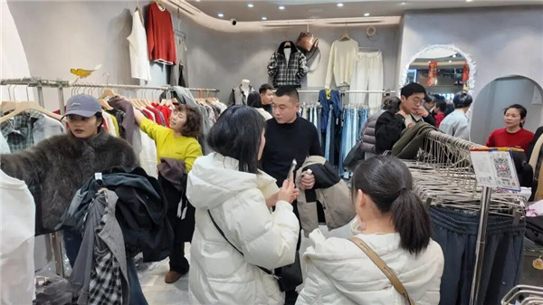 记者实地探访看到,市场客流显著增长,商户销售持续火爆。受访商户紧跟时尚潮流与节日消费需求精准备货,翻领简约款、老钱风、国风元素及寓意“紫气东来”的色系服饰深受消费者喜爱,成为市场热销品类。不少商家同步推出100元两件、150元两件等惠民促销活动,高性价比商品进一步点燃消费热情。