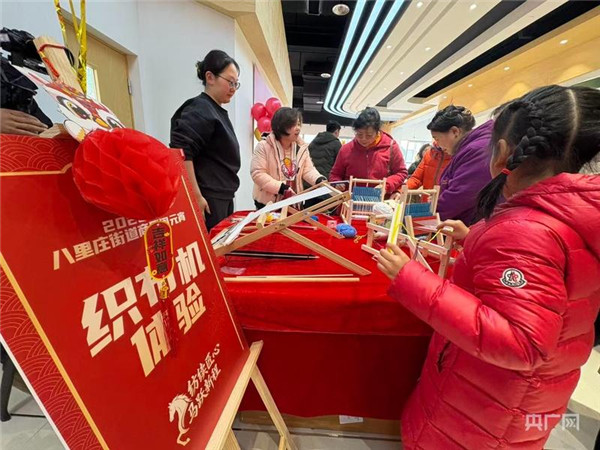 在室内南区的京棉纺织博物馆内,95岁高龄的原厂职工刘满琮等老一辈纺织人亲自担任讲解员,带领参观者穿梭于纺织机具模型、历史文献与手绘图纸之间,生动讲述八里庄纺织产业的发展历程与传统工艺的演变。室内北区化身为纺织文化体验区,纺织手持装饰、手工编织、手工扭扭棒、围巾编织、织布机体验等互动项目吸引众多市民参与,猜灯谜赢取纺织主题文创礼品的环节将现场气氛推向高潮。