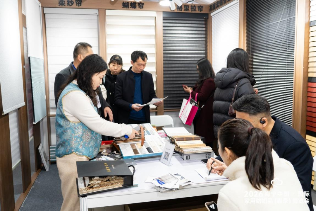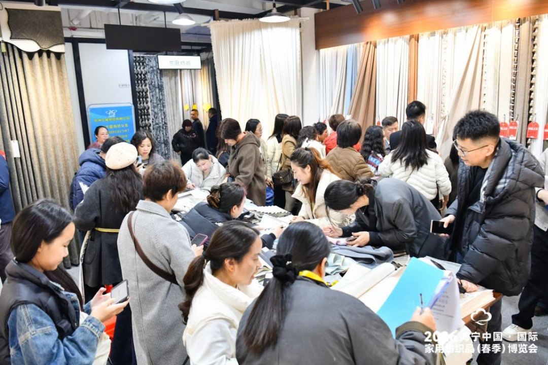 ![]() ![]() 走进海宁阑园纺织品有限公司的门店,仿佛步入一个个精心布置的家居生活场景。各种色彩、风格的成品窗帘整齐悬挂,辅以沙发、抱枕、茶几、鲜花等整体软装搭配,营造出温馨舒适的沉浸式体验空间。来往商客络绎不绝,交流洽谈声此起彼伏,汇成一曲热闹的春日交响。据公司总经理戴庆虎介绍,今年展会他们带来了高精密、雪尼尔、棉麻等14个系列的新产品,以高性价比、过硬品质和独特设计吸引了一大批忠实“铁粉”慕名而来。“很多老客户今天市场刚开门就直奔我们展位,等着看今年的新品。”戴庆虎笑着说道,手中的订单簿已密密麻麻写满意向客户的信息。