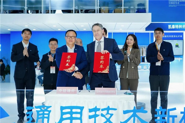 战略携手 展位现场,合作签约仪式接连举行。3月11日,通用技术新材中纺绿纤携手德国Smartfiber与美国ABW,布局全球高端再生纤维素纤维产业,共同推动Seacell™、Smartcel™海洋驱动型功能性纤维的产业化整合与商业化拓展,助力全球绿色纺织产业升级。3月12日,通用技术新材中纺绿纤与Circulose正式签署合作意向框架协议,双方将围绕再生浆粕供应、莱赛尔纤维生产展开深度合作。此次携手将充分发挥双方技术与资源优势,加速循环可持续原材料的规模化应用,共筑纺织行业绿色低碳循环发展新生态。同日,通用技术新材福建中纺标与浙江青士达成合作协议,双方将开展全链条检测合作,助力破解产业难题,推动竹原纤维产业规范化、标准化、高端化发展。强强联合,以标准筑牢产业发展根基。