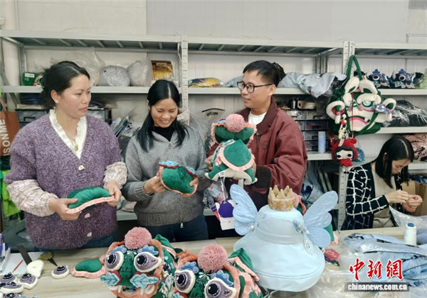 在桂林市平乐县同安镇艺成手工厂,数十名绣娘以传统手绣工艺,制作融入醒狮、舞龙、虎头、京剧等中国传统文化元素的棒球帽、十二星座系列渔夫帽、小飞猪挂件等。这些传统手绣与现代审美融合的立体布艺,通过电商平台和线下商铺,受到众多海内外消费者青睐。 勾勒这幅手工产业版图的,是桂林“80后”返乡创业者何继良与合伙人刘思蔚。