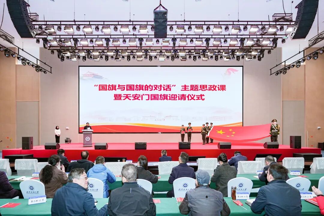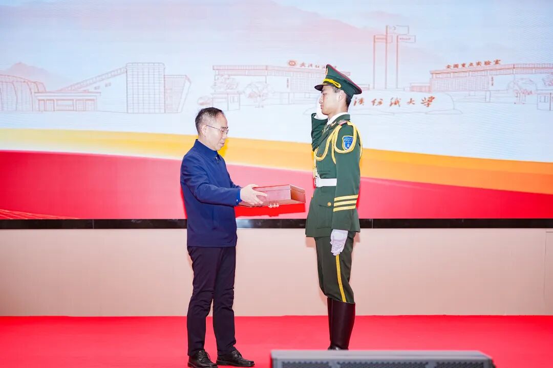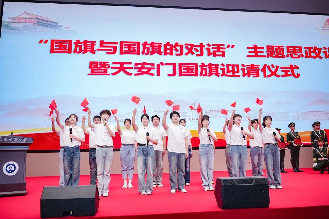 他通过讲述校友李建全、孙应安、王鹏和材料学院孙九霄团队、纺织学院夏治刚团队的先进事迹,勉励纺大人厚植家国情怀,把两面国旗故事织进思政课堂,传递信仰的力量,深耕科研、勇攀高峰、敢于创新、勇于实践,把个人理想融入国家战略,让科技创新成为青春最亮丽的底色。让我们以国旗为航标,把这份信仰转化为实实在在的行动,在“双一流”建设的征程上,织就属于纺大人的锦绣华章,让五星红旗永远在我们心中高高飘扬。
