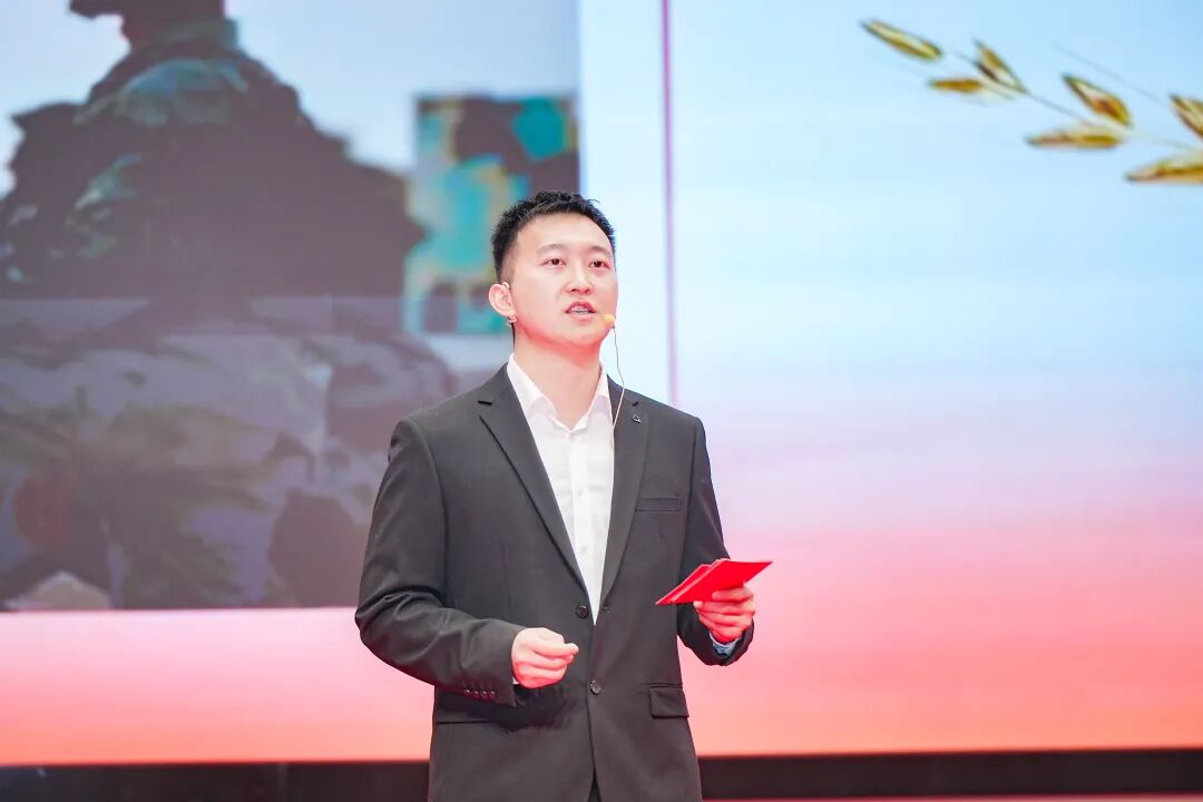 ![]() 校友代表王鹏深情回忆了自己与国旗朝夕相伴的难忘岁月。作为武警“铁拳支队”战士,他曾在天安门金水桥哨位守护国旗,参与9·3大阅兵、G20杭州峰会安保任务,这段难忘的经历让他铭记:国旗在哪里,中国就在哪里;军人守在哪里,平安就在哪里。最后他勉励学弟学妹们心中有旗,脚下有路。