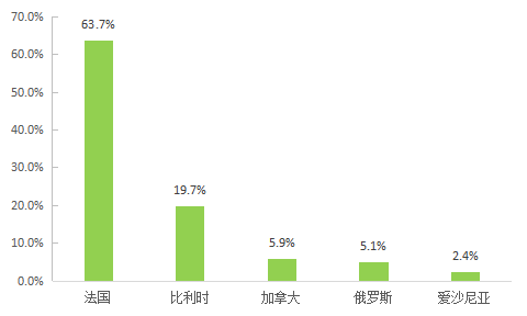 资料来源:中国海关 图11 2024年中国汉麻纤维进口国别数量占比统计