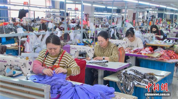 缝纫机的哒哒声此起彼伏,一排排设备飞速运转,裁剪、缝制、质检、打包……在素有“中国泳装名城”之称的辽宁兴城,自春节过后便订单爆满,眼下正迎来泳装生产旺季,当地千余家泳装企业以“满弓”状态赶制海内外订单。
