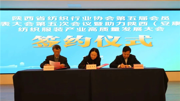 秦巴叠翠迎佳客,汉江欢歌聚英才。3月27日,陕西省纺织行业协会第五届会员代表大会第五次会议暨陕西(安康)纺织服装产业高质量发展大会在安康市隆重召开。会上,中国纺织工业联合会、西安工程大学分别从全球纺织产业趋势、新质生产力视角下陕西纺织产业智能制造等方面作了专家报告;安康市工信局作了纺织服装产业专题推介,陕西省内部分服装纺织企业进行了交流发言。会议还举行了中国标准工业集团与安康学院、陕西省纺协会战略合作签约仪式。 本次大会以“创新驱动,绿色转型,智造未来——陕西纺织业高质量发展新路径”为主题,由陕西省纺织行业协会、安康市工业和信息化局主办,中国纺织工业联合会、陕西省工业和信息化厅指导。会议汇聚陕西省纺织行业精英、专家学者以及协会会员单位代表170余人,共商产业升级大计、共谋协同发展新篇。