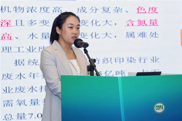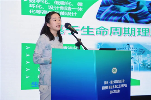 华纺股份有限公司研发经理刘晓敏以《锦/棉织物深浓色无氮印花及高牢度固色工艺开发》为题进行了分享。针对当前印染废水含氮量高、深浓色织物固色难湿处理色牢度差、智能化和品质有待进一步提升等行业共性难题,结合企业实践,她详细就深浓色系织物高色牢度染整关键技术、低氮排放的生态染料印花关键技术、高效智能染整装备改进的工艺和技术创新进行了介绍,该工艺在高色牢度、氮近零排放、提升效率以及节能降耗等方面具有显著的社会经济效益与环保效益优势。目前,该研究成果已在华纺实现了产业化生产。