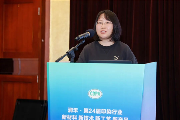 宁波润禾高新材料科技股份有限公司技术中心总监杨振在《技术赋能·绿色破局——印染助剂创新与印染工艺优化》的主题报告中从绿色制造、绿色印染、创新方案三个维度分享了润禾在相关领域的具备强劲市场竞争力的产品线以及前沿技术方案。他表示,在产品方面,公司重点开发高相容性硅油及无氟防水剂等绿色解决方案,有效助力下游客户应对环保要求与出海认证挑战;在工艺创新上,通过前处理低温工艺等新技术,显著降低了水、电等能源消耗,提升生产效率。未来,润禾将继续坚持“环保、高效、节能”的理念,通过技术创新与产业链协同,推动印染行业向绿色化、高性能化持续发展,为行业可持续未来贡献力量。