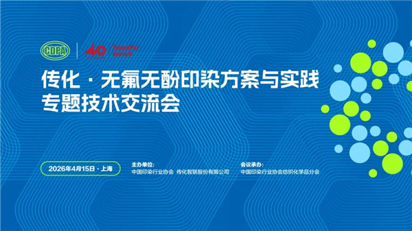 “十五五”时期是加快经济社会发展全面绿色转型,建设美丽中国的关键时期。注重源头治理,加强环境风险防控是加快推进印染行业全面绿色转型,增强绿色发展动能的关键环节和重要举措。当前,印染生产中含氟、含酚印染助剂的使用和替代是产业链供应链高度关注的共性问题。 为全面落实国家精准科学治污要求,加强污染物源头防控,4月15日,在第25届中国国际染料工业及有机颜料、纺织化学品展览会期间,由中国印染行业协会、传化智联股份有限公司联合主办,中国印染行业协会纺织化学品分会承办的“传化·无氟无酚印染方案与实践专题技术交流会”在上海成功召开。会上,《全链绿动——纺织化学品可持续转型白皮书》正式发布。 中国纺织工业联合会副会长李陵申,中国工程院院士、武汉纺织大学党委书记、纺织新材料与先进加工全国重点实验室主任徐卫林,中国印染行业协会会长林琳、副会长董淑秀,中国纺织信息中心主任胡松、科技信息部副主任王新力,国家先进印染技术创新中心主任、东华大学化学与化工学院教授毛志平,中国印染行业协会纺织化学品分会会长、传化集团副总裁、传化功能化学品板块总裁徐迅等有关领导和嘉宾,以及来自高等院校和科研院所的专家学者、纺织产业链上下游优秀企业代表近200人出席了本次活动。 会议聚焦无氟防水剂、无酚酸性固色剂的技术创新与应用实践,旨在加快推动印染助剂源头绿色替代,构建产学研用协同、上下游联动的供应链全流程管控体系,破解PFAS与酚类物质替代技术难题,提升行业合规能力与可持续竞争力,助力印染行业低碳绿色转型。