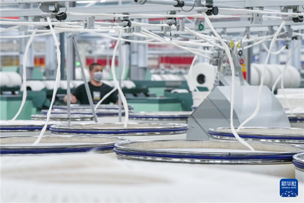 走进位于江苏省盐城市的悦达纺织集团有限公司10万锭绿色智能工厂,眼前的一切颠覆了人们对传统纺织厂的认知。 这里没有“千人纱、万人布”的喧嚣,没有来往的人工搬运,也没有漫天飞舞的棉絮。映入眼帘的,是一排排高速运转的数字化设备,是众多自动导引车在智能传输通道上穿梭自如,是数十万个带“芯”纱管在生产线上有序流转。