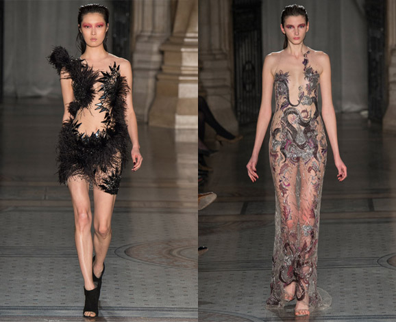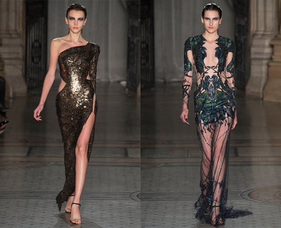 Julien Macdonald这一季是电闪雷鸣般“致命”的性感。贴身而裸露的设计,让模特看起来像一条湿露露的美人鱼,又像是海底里有着致命诱惑力的危险女妖,性感同时又凌厉地不留余地。