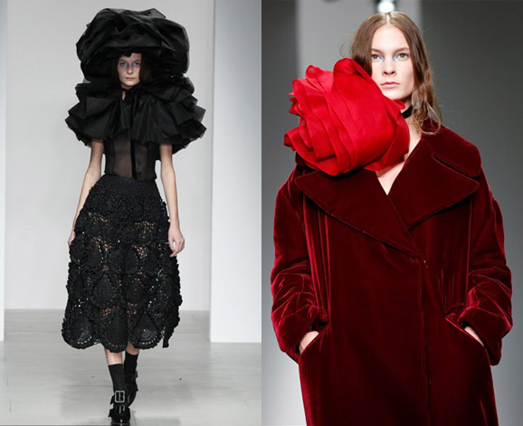 John Rocha出生于香港,于70年代移居伦敦学习服装设计。John对头饰有着偏执的热爱。在本次2014秋冬系列中,他过多的运用了褶皱,夸张的头饰戴在模特头上像极了向日葵;而硕大的玫瑰花脖饰几乎可以用碍事儿来形容。