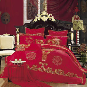 一般来说,中国人在结婚时都偏爱用红色做装饰,床上用品自然不例外。人们选用红色是图吉利热闹,让大喜的日子能更添几分喜庆。“大红色是中国传统的结婚主色调,新人卧室里的红色越多,就显得越喜庆。今年,大红色的多件套床品几乎是新人必选的款式。随着消费水平的提高,新人一次购买好几套产品的情况开始增多,粉红色占整个销售的比例在提高。”愉悦家纺山东专卖店的销售经理李娜介绍说。