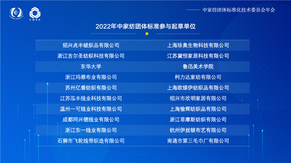 同期,还开展了2023团体标准审定工作,在纺织工业科学技术发展中心高工韩玉茹,中家纺团标委专家、研究员郑宇英,全国家标委秘书长张越,床品分标委秘书长杨旭的牵头下,审定《碳纳米管薄膜电加热枕、毯、垫》《莱赛尔纤维床上用品》《机织纱布床上用品》《精品荞麦壳枕、垫》《荞麦壳枕、垫健康使用指南》5项床品团体标准;在东华大学教高李卫东,中家纺团标委专家、正高级工程师唐祖根的牵头下,审定《纺织品洗晒频次提示功能的评价方法》《柔纱帘面料》《家具用阻燃织物》3项布艺、毛巾团体标准。