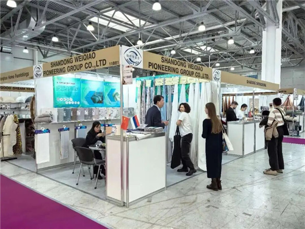 从2017年起,魏桥创业集团就开始参加纺织贸促会组织的俄罗斯家纺展展商团组。 本届展会现场,李占西经理表示:“多年来,我们坚持开拓俄罗斯市场,如今在这里已经有较为固定的客户。俄罗斯市场起定量往往比较小,喜欢成品、不需要太多定制服务。近些年,我们内部也在改变产品销售风格以适应俄罗斯本土市场的特点。”