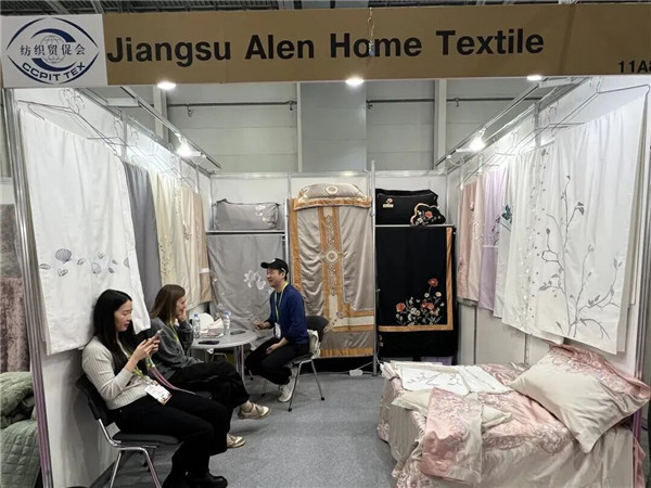 作为中国家纺行业的骨干企业,江苏悦达股份有限公司(以下简称“江苏悦达”)已是第二次亮相俄罗斯家纺展,其以天然、环保为核心的产品系列,吸引了众多国际买家的目光。 江苏悦达国际业务负责人表示,悦达在这里已经有了一定的客户基础,这次来,既是为了巩固老关系,也是希望结识新朋友,更深入地了解本地市场的需求变化。 “悦达认为绿色、可持续消费趋势是具有全球市场发展意义的。悦达采用的棉、天丝和竹纤维都是源自天然的可再生材料,以其卓越的透气性、亲肤感和环保属性,越来越受到俄罗斯市场高端消费者的青睐。目前,俄罗斯市场约占悦达整体出口比重的5%,是具有重要增长潜力的市场。”据了解,江苏悦达与土耳其航空公司等优质客户保持着长期稳定的订单合作,可见其产品和服务在欧洲及周边地区的竞争力十足。