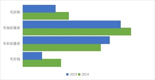 2024-2025年1~7月日本进口毛纺产品主要品类变化情况(单位:万日元)
