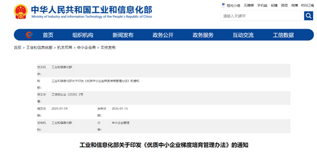 在管理机制方面,《办法》强化了全过程动态管理。工信部将建设优质中小企业梯度培育平台,搭建企业数据库,通过数据互通共享减轻企业填报负担。各级主管部门将建立健全主动发现机制,常态化挖掘产业链供应链、股权投资、知识产权等维度的潜在优质企业。对于已认定的企业,实施有效期为3年的动态管理,对于发生重大安全事故、数据造假或严重失信的企业,将坚决取消认定。 工信部提醒申报企业要关注申报条件。对所有在中华人民共和国境内依法设立、符合《中小企业划型标准规定》的企业一视同仁,不分所有制、不分行业。 要重视信息更新。由于新的标准对质量评价得分作出要求,需要企业在每年5月31日前通过培育平台更新信息,才能计算年度评价得分。如果企业在同一个有效期内,累计两次未更新数据,将取消认定,这点企业也要给予重视。 《办法》明确自2026年4月1日起实施,为尽量减少因标准变化对复核企业带来的影响,在正式实施前,已经启动的专精特新中小企业和专精特新“小巨人”企业复核工作,可按照原标准实施。 据介绍,“十四五”以来,全国累计培育专精特新“小巨人”企业1.76万家,带动培育专精特新中小企业超14万家,科技和创新型中小企业超60万家,优质中小企业梯度培育体系基本形成。 附: (来源:纺织服装周刊) 声明:凡于本网文章前标有“CTEI网讯”之文章即表示为本网原创、编译、第一信息源、第一媒体合作方等,如需转载请务必标注文章来源自“中国纺织经济信息网 www.ctei.cn”,本网保留法律权利。