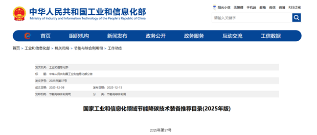 为贯彻落实《国务院办公厅关于印发〈制造业绿色低碳发展行动方案(2025-2027年)〉的通知》(国办发〔2025〕21号),加快推广节能降碳先进技术,加强重点行业领域技术改造升级和大规模设备更新,现将《国家工业和信息化领域节能降碳技术装备推荐目录(2025年版)》予以公告。 附件:国家工业和信息化领域节能降碳技术装备推荐目录(2025年版).pdf(点击最下方下载) 工业和信息化部 2025年12月8日