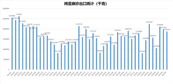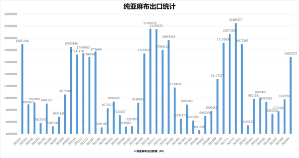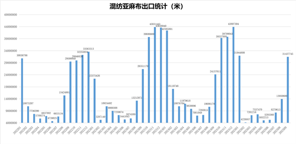1-9月亚麻打成麻累计进口13.63万吨,同比增长78.95% 1-9月亚麻二粗累计进口6.82万吨,同比减少19.99% 1-9月纯亚纱累计出口1.48万吨,同比增长16.31% 1-9月纯亚麻布累计出口9.53万米,同比增长11.35% 1-9月混纺亚麻布累计出口11.49万米,同比减少19.27% (来源:中麻协) 声明:凡于本网文章前标有“CTEI网讯”之文章即表示为本网原创、编译、第一信息源、第一媒体合作方等,如需转载请务必标注文章来源自“中国纺织经济信息网 www.ctei.cn”,本网保留法律权利。