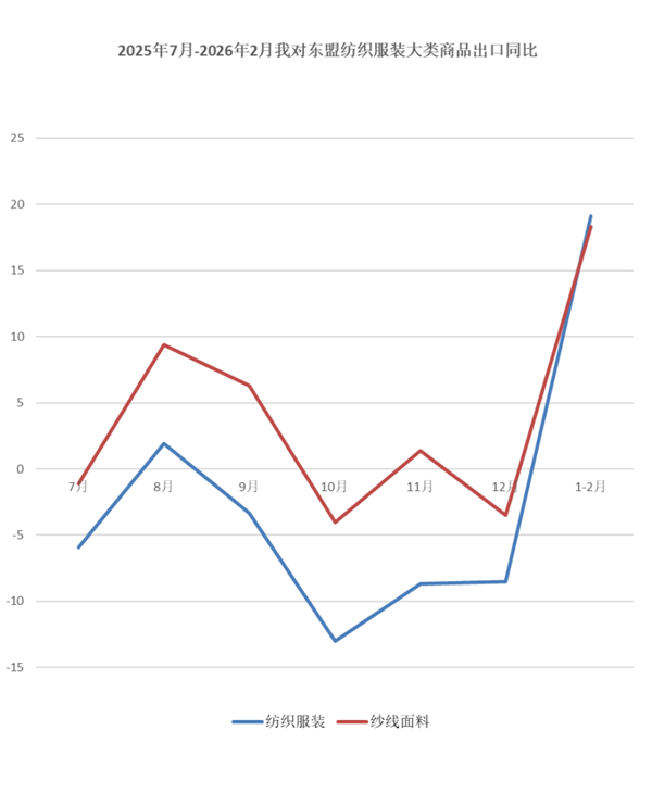 1-2月,我对东盟出口纺织服装79.6亿美元,同比增长19.1%;其中对越南出口纺织服装24.3亿美元,同比增长4.6%;对柬埔寨出口12亿美元,同比增长40.5%;对马来西亚出口9.6亿美元,同比增长40.3%。分产品看,1-2月我对东盟出口纱线面料44.9亿美元,同比增长18.3%;出口服装18.6亿美元,同比增长17%。